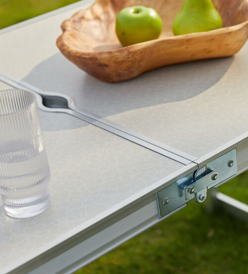 Стіл для пікніка вирізняється міцністю та надійністю, його виготовлено з міцного МДФ і алюмінію. Його довжина в 120 см дасть змогу Вам з легкістю розмістити 4 дорослі людини.